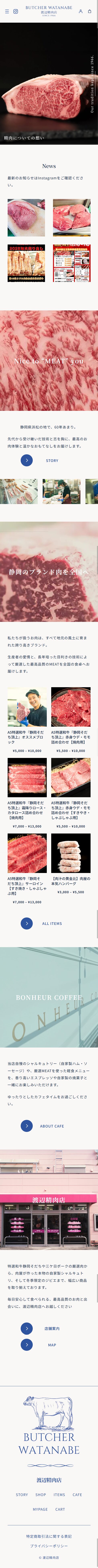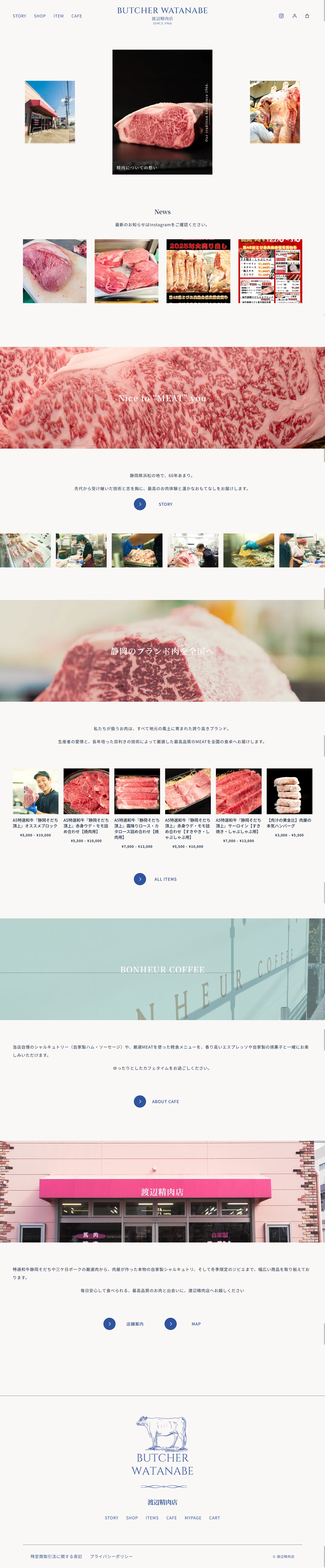 静岡県浜松市で60年以上続く「渡辺精肉店」様の、初となる公式ウェブサイトおよびオンラインストアの立ち上げを担当いたしました。